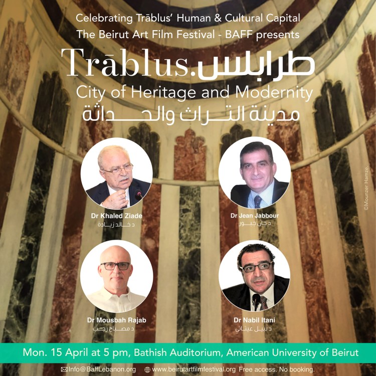 This special edition of BAFF dedicated to Trāblus’ human and cultural capital would not have been possible without the support of the Saadallah and Loubna Khalil Foundation, the AUB Center for Arts & Humanities, the Théâtre Béryte and the Faculty of Music and Musicology at Antonine University. The BAFF organizers would like to thank all the speakers taking part in the 9 panel discussions: Mohamad Abi Samra, Prof Nidaa Abou Mrad, Sarah Al Charif, Sissi Baba, Lea Baroudi, Carlos Chahine, Zeina Daccache, Dr Zahida Darwiche Jabbour, Joudy El-Asmar, Anastasia Elrouss, Nicolas Fayad, Dr Nahed Ghazal, Mounzer Hamze, Dr Nabil Itani, Mouhamad Jabakhanji, Dr Jean Jabbour, Dr Hany Kahwagi-Janho, Lamya Karkour, Sally Kassem, Dr Maha Kayal, Charles Kettaneh, Elias Khlat, Nicolas Khoury, Dr Yasmine Makaroun, Dr Mousbah Rajab, Zeina Saleh Kayali, Feyrouz Serhal, Dr Jean Touma, Dr Jean Yasmine, Dr Hayaf Yassine, Hady Zaccak, Bassem Zawdeh, Dr Fadl Ziade, Dr Khaled Ziade.
