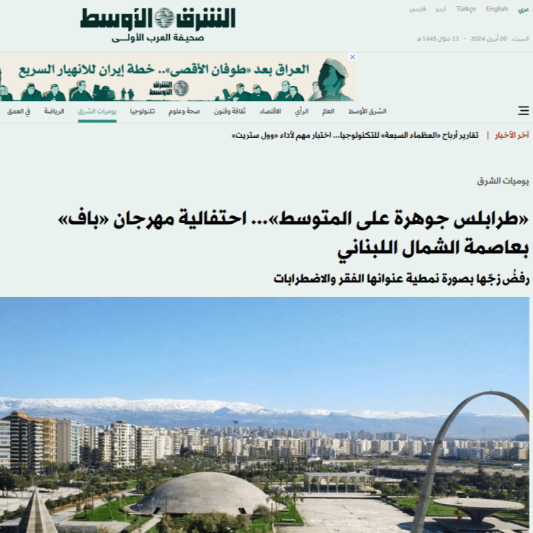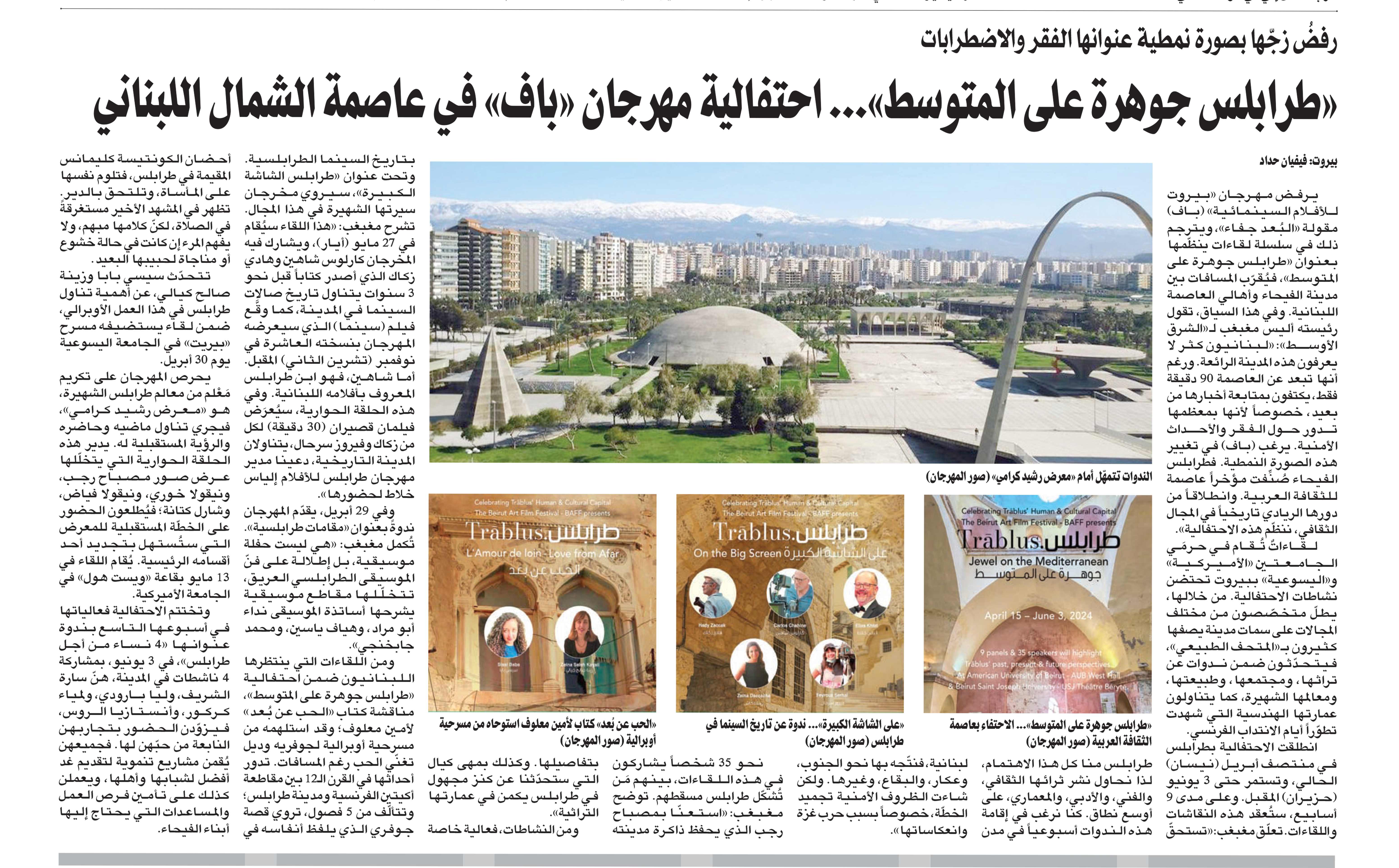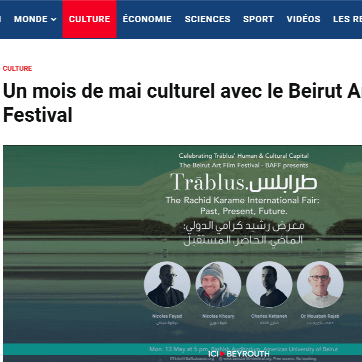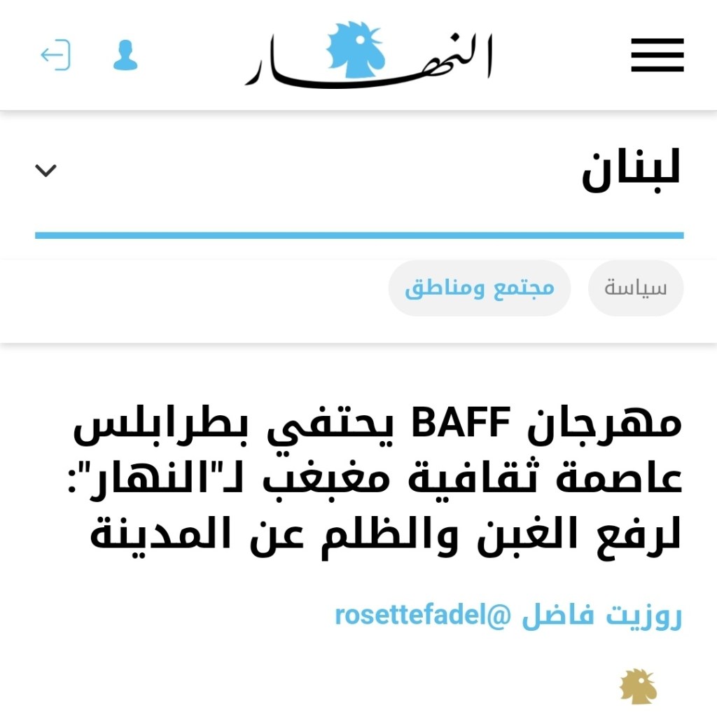 Pour le Beirut Art Film Festival – BAFF c’est, tout à la fois, une grande joie et un insigne honneur que de célébrer Tripoli « capitale culturelle du monde arabe 2024 » et joyau sur la Méditerranée hier, aujourd’hui et pour toujours.