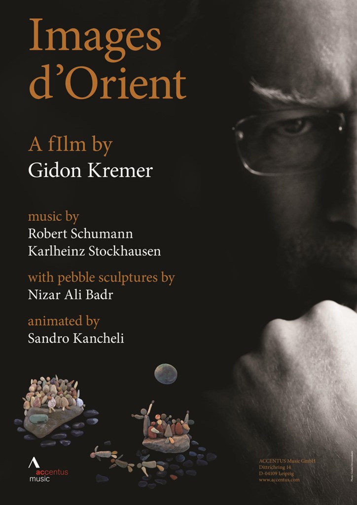 Le sculpteur syrien Nizar Ali Badr raconte l’histoire de réfugiés de son pays, à l’aide de cailloux de sa plage locale. Son art est devenu l’inspiration pour un film unique, à la demande du violoniste letton Gidon Kremer, le Géorgien Sandro Kancheli, spécialiste de l’animation, met en mouvement les figures de pierre sur la musique de Robert Schumann, Images d’Orient.