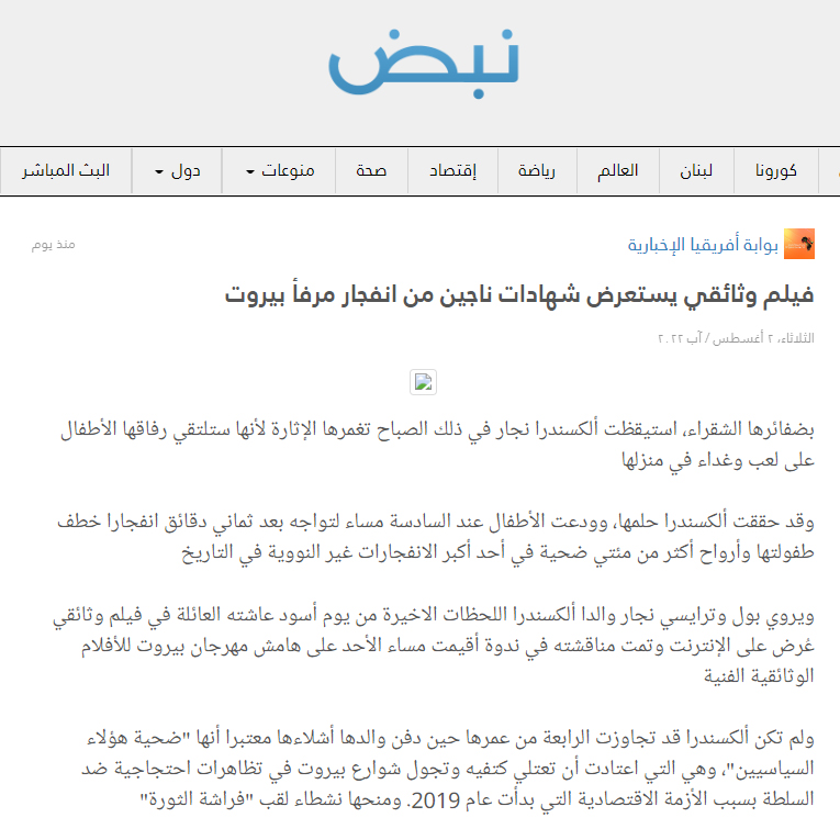 ENG. Two years after the double explosion of warehouse 12 that ripped through Beirut, the story can finally be told by those who lived through this bloody and teary night.